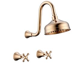 Posh Canterbury Gooseneck Shower Set Cross Handles Brass Gold (3 Star)
