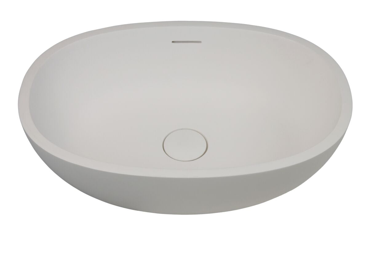 Kado Lussi Cast Solid Surface Above Counter Basin with Plug & Waste 500mm White